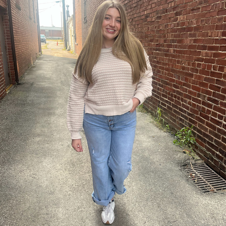 Two-toned Knit Textured Sweater, Taupe